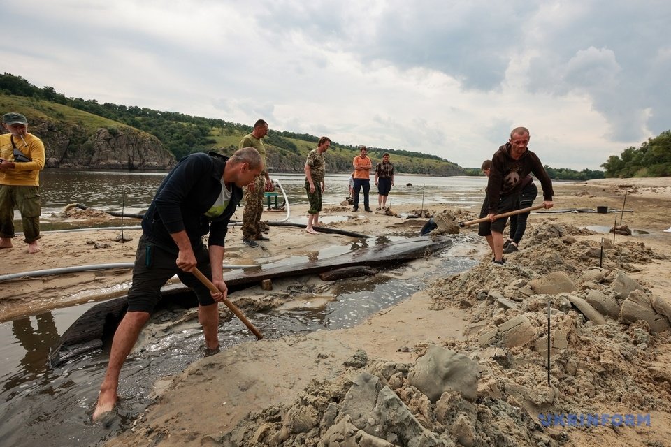 У Запоріжжі під час обстеження обмілілої внаслідок підриву Каховської ГЕС берегової зони виявили дубовий човен, вік якого може сягати понад 1000 років.