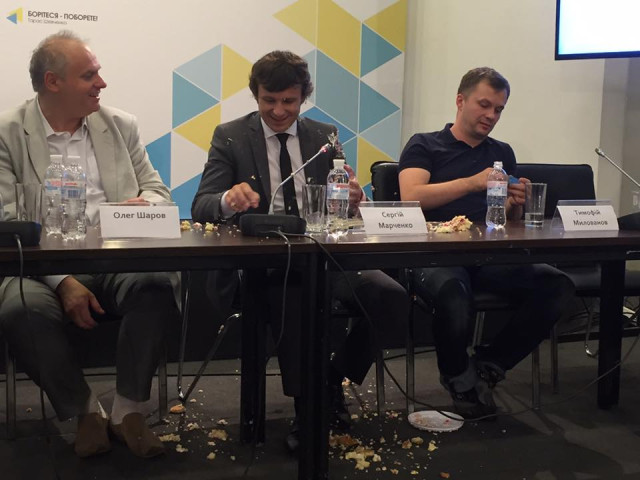 Як передає Інтерфакс-Україна, під час круглого столу щодо реформи стипендій, коли слово надали Марченкові, один з невідомих встав зі свого місця і з вигуком “Таких, як ти, судити потрібно” кинув у міністра тортом.