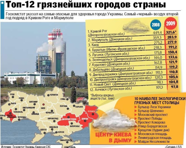Загалом, у 2009 році у більшості українських міст шкідливих викидів стало менше порівняно з 2008-м. Екологи пояснюють це наслідками кризи.