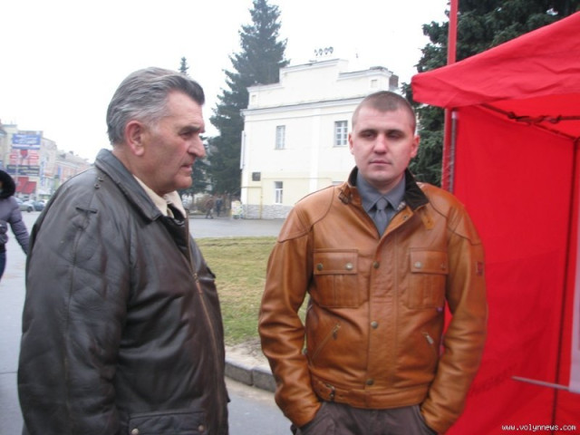 ...камрад на 4 фотке с усиками - это некто товарищ Селедцов. Лет эдак 10 назад он взял ссуду в банке и стал издавать газету "Волынь-Украина", но прогорел, в результате банк забрал у него квартиру. С этого момента партайгеноссе Селедцов стал отчаянным большевиком. За лучшей долей поехал он в Киев и там на Крещатике его повязали, обнаружив у него обрез. Что он хотел делать с ним во стольном граде - история умалчивает...Одно время на рынке продавал газеты. Теперь вот симпатяга Селедцов - борец за права трудящихся. Была у него еще неудачная попытка сделать обрезание и уехать в Израиль, но это уже другая история. С ком.приветом, Селедцов!
