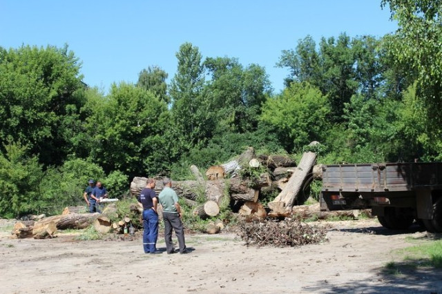 Також працівники ріжуть і вивозять дерева від Волинської обласної санстанції, які повалило після дощів, викошують траву.