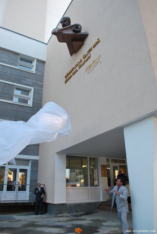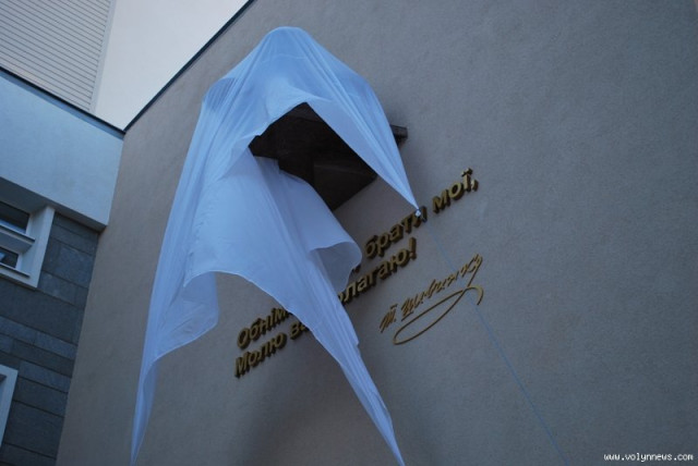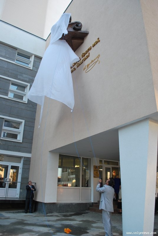 На боковій стіні Волинського обласного музично-драматичного академічного театру імені Тараса Шевченка 1 жовтня в Луцьку урочисто відкрили погруддя Кобзаря.
