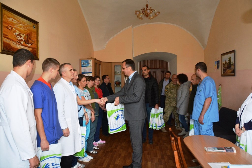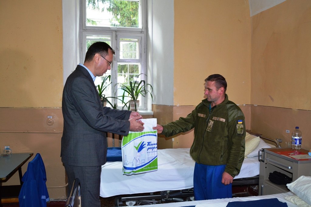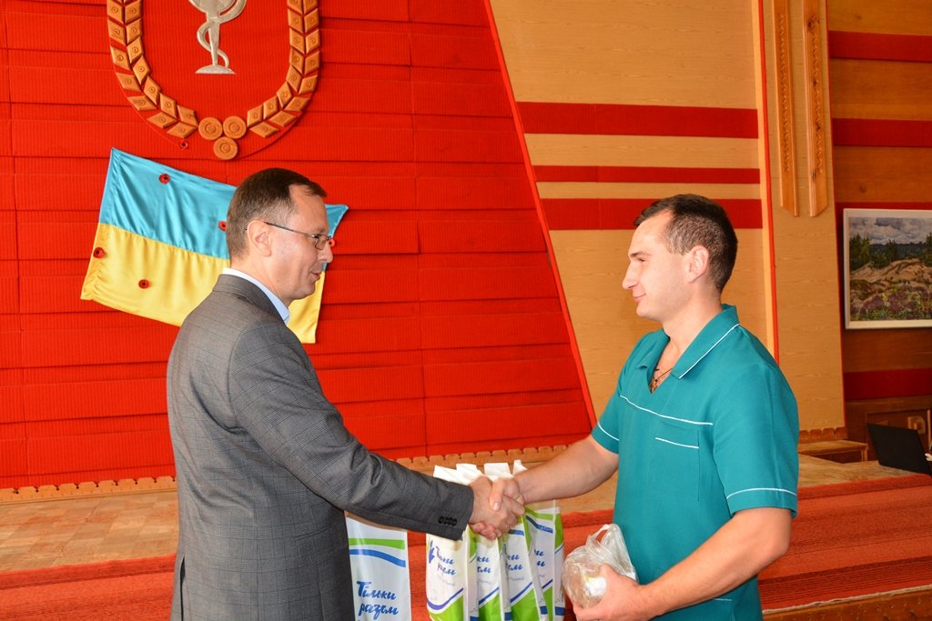 З нагоди свята Орест Маховський вручив солодощі та сертифікат на придбання товарів у гіпермаркеті «Нова лінія» на суму 1000 грн для учасників АТО. Подарунки отримали 45 пацієнтів та 2 працівники закладу.