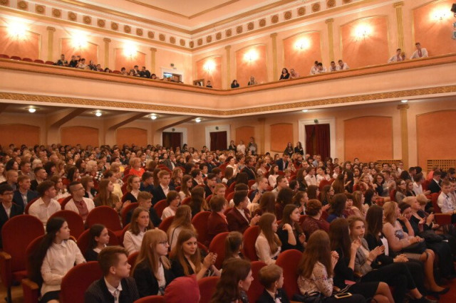 Для того, щоб привітати цвіт учнівської молоді та висловити подяку найкращим педагогам, сюди завітали радник міського голови Ігор Поліщук разом із начальником управління освіти Зіновією Лещенко. Також у залі зібрались працівники освіти, керівники навчальних закладів та батьки учнів.