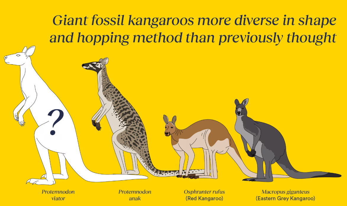 Тисячоліттями великі сумчасті тварини блукали Австралійським континентом, проте вчені мали обмежені знання про гігантських кенгуру, або Protemnodon. Наразі ж їм вдалося ідентифікували три нові види вимерлих гігантів – Protemnodon viator, Protemnodon mamkurra та Protemnodon dawsonae, які жили від пʼяти мільйонів до 40 тисяч років тому.