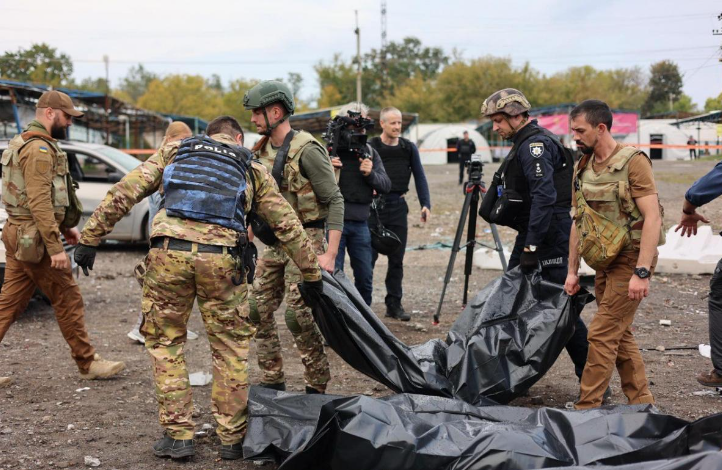 «На місці трагедії продовжують працювати близько 80 фахівців. Слідчі та криміналісти поліції допомагають колегам із СБУ збирати докази. Очолює поліцейське документування начальник управління по організації розслідування злочинів скоєних під час військових конфліктів Головного слідчого управління Національна поліція України», – зазначив Голова Нацполіції.За його словами, наразі відомо, що росіяни били по людях модернізованими ракетами С-300: «Вирви від цих модифікованих ракет не такі глибокі, але радіус вибухової хвилі набагато більший. Відповідно, більша зона та сила ураження людей... російські армійці знали, що тут завжди чимало людей. Особливо вранці. І навмисно поцілили саме сюди. Це цілеспрямоване масове вбивство. Що б не заявляли у країні вбивць, ми міцно стоїмо на своїй землі. Тимчасово захоплені території повернемо. І не зупинимося, доки не покараємо всіх воєнних злочинців».