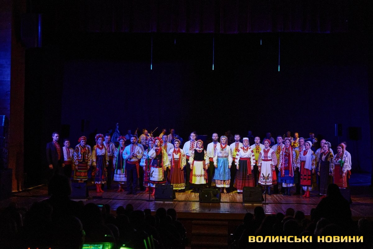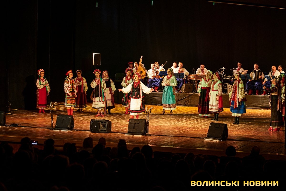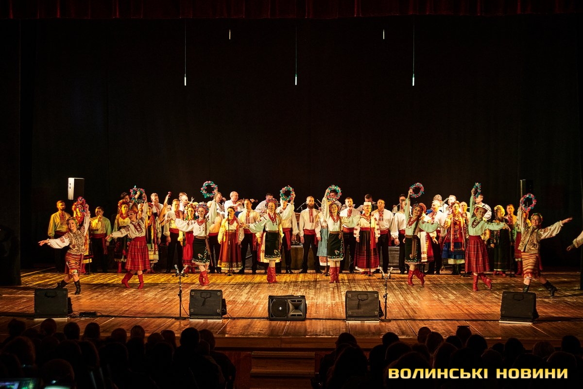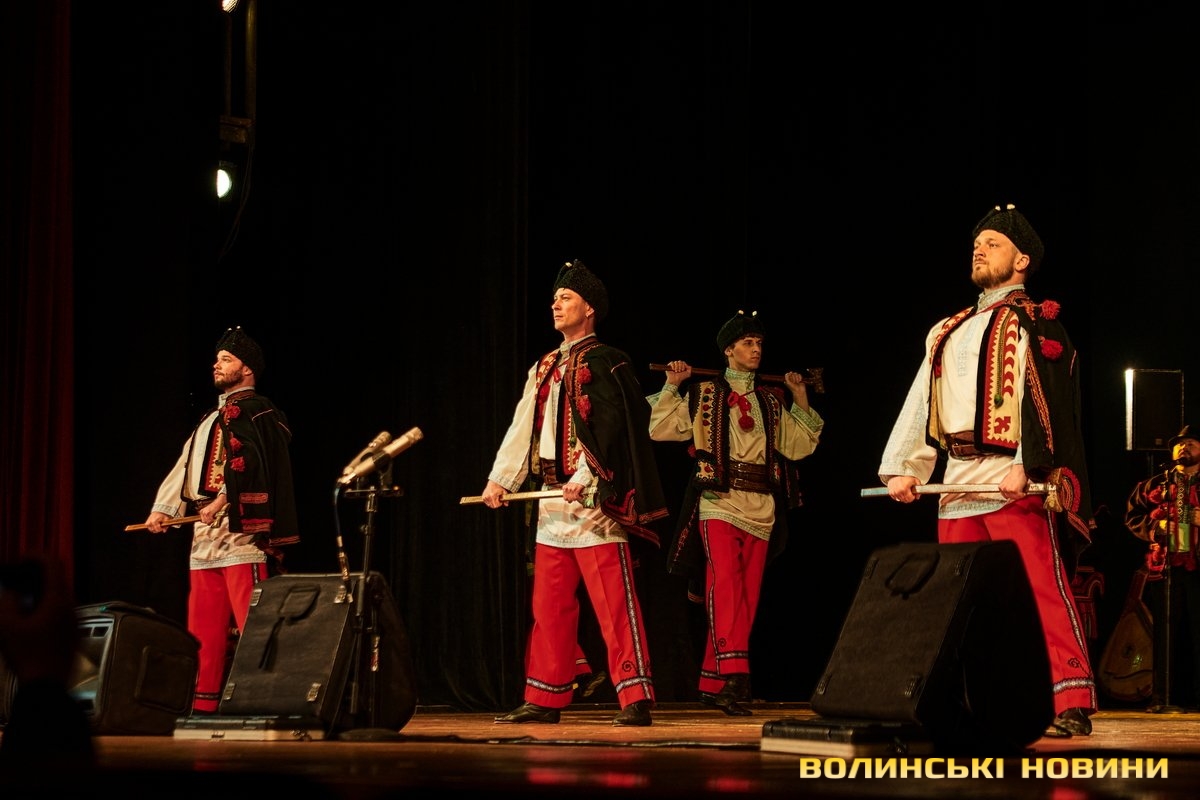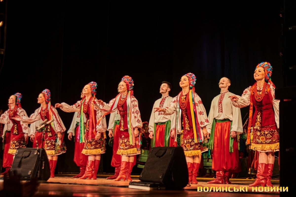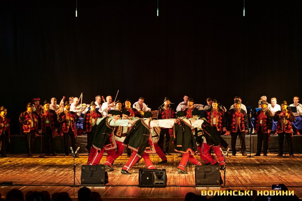 Концерт розпочався з хвилини пам’яті за тими, хто віддав свої життя за Україну. Козацькі думи, жартівливі сценки, лірика, гаївки та веснянки переплелися у неймовірне видовище.Кілька разів зі сцени лунали композиції, які глядачі зустрічали оплесками та стоячи. Особливо запам’яталися пісні: «Ой у лузі червона калина...», «Реве та стогне Дніпр широкий», жартівлива сценка «Козацькі забави» та звичайно карпатський аркан.«Дякуємо Волинській землі за гостинний прийом. Тут надзвичайна атмосфера і талановиті люди. Безмежно дякуємо нашим воїнам за те, що ми сьогодні усі разом співаємо, танцюємо і можемо так спілкуватися. Слава Збройним силам України! Ми збираємо цей тиждень кошти на карети швидкої допомоги... Українці – одна велика родина. І давайте працювати усі разом на перемогу. Я впевнена, що в цьому залі немає жодної людини, яка була би байдужою до долі нашої держави. Тому що Говерла стоїть, Дніпро реве, Україна бореться. Україна була, Україна є і Україна буде...І нехай згинуть наші вороженьки, як роса на сонці!», – звернулася до глядачів ведуча свята.