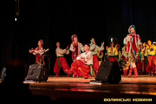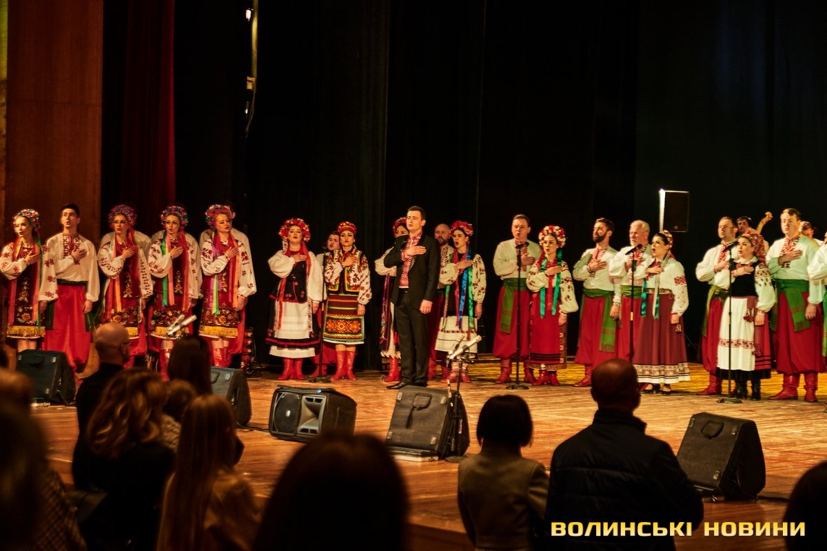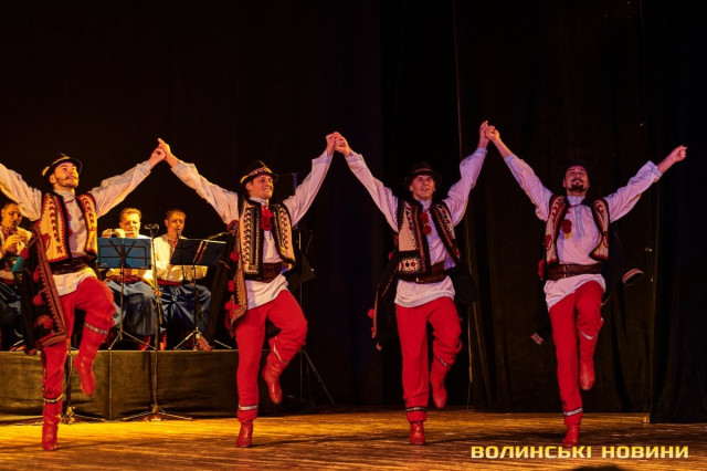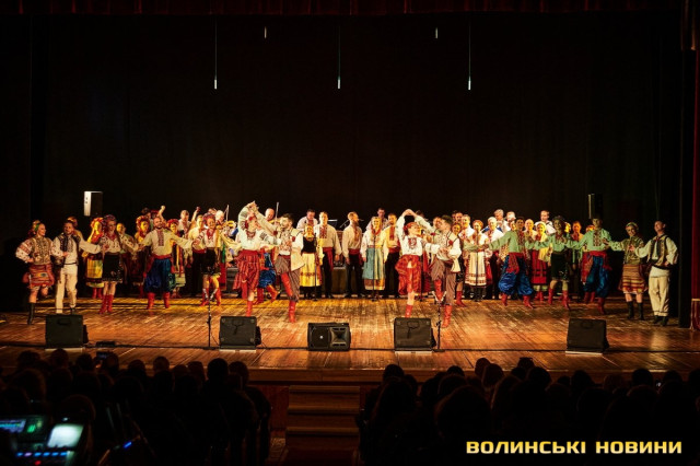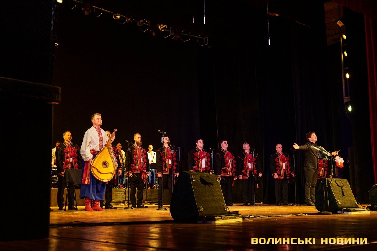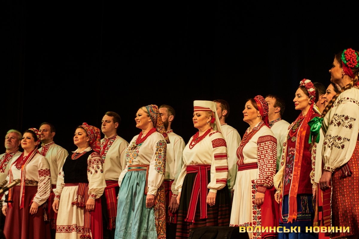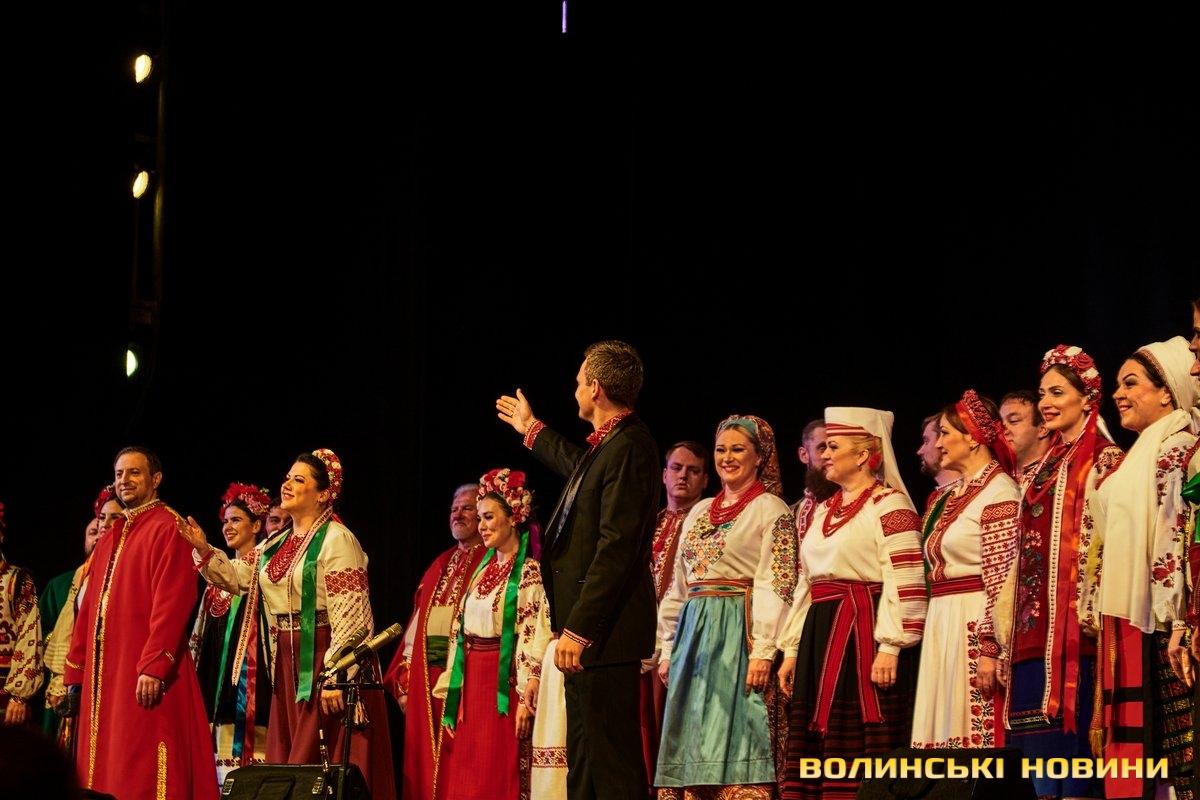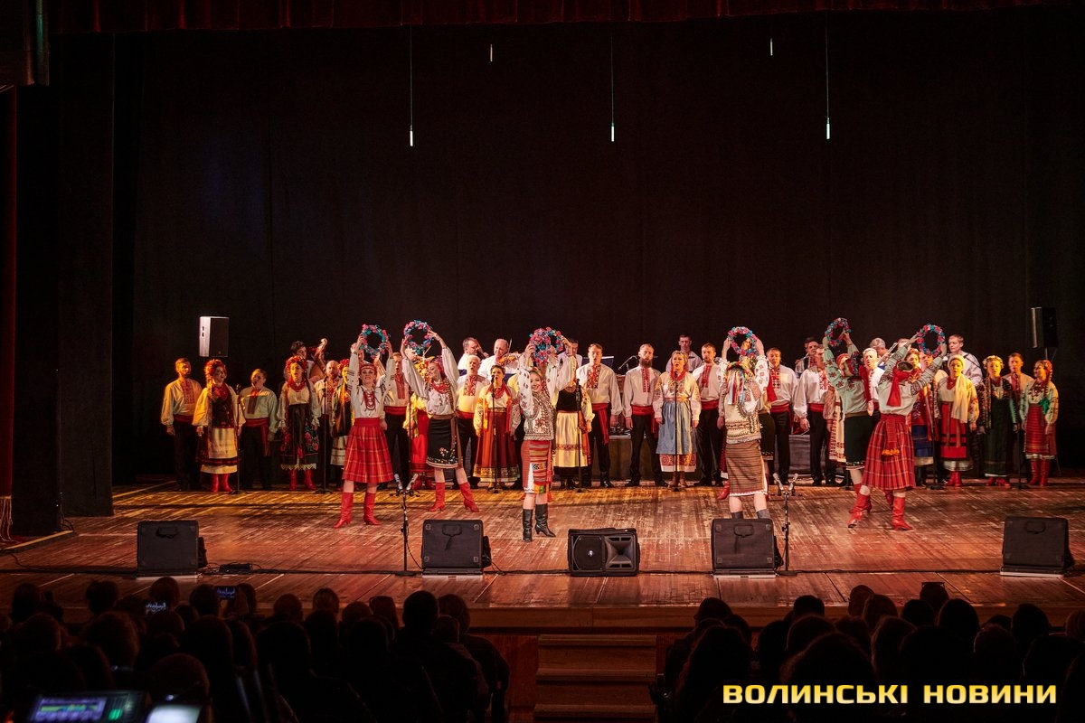 Концерт розпочався з хвилини пам’яті за тими, хто віддав свої життя за Україну. Козацькі думи, жартівливі сценки, лірика, гаївки та веснянки переплелися у неймовірне видовище.Кілька разів зі сцени лунали композиції, які глядачі зустрічали оплесками та стоячи. Особливо запам’яталися пісні: «Ой у лузі червона калина...», «Реве та стогне Дніпр широкий», жартівлива сценка «Козацькі забави» та звичайно карпатський аркан.«Дякуємо Волинській землі за гостинний прийом. Тут надзвичайна атмосфера і талановиті люди. Безмежно дякуємо нашим воїнам за те, що ми сьогодні усі разом співаємо, танцюємо і можемо так спілкуватися. Слава Збройним силам України! Ми збираємо цей тиждень кошти на карети швидкої допомоги... Українці – одна велика родина. І давайте працювати усі разом на перемогу. Я впевнена, що в цьому залі немає жодної людини, яка була би байдужою до долі нашої держави. Тому що Говерла стоїть, Дніпро реве, Україна бореться. Україна була, Україна є і Україна буде...І нехай згинуть наші вороженьки, як роса на сонці!», – звернулася до глядачів ведуча свята.