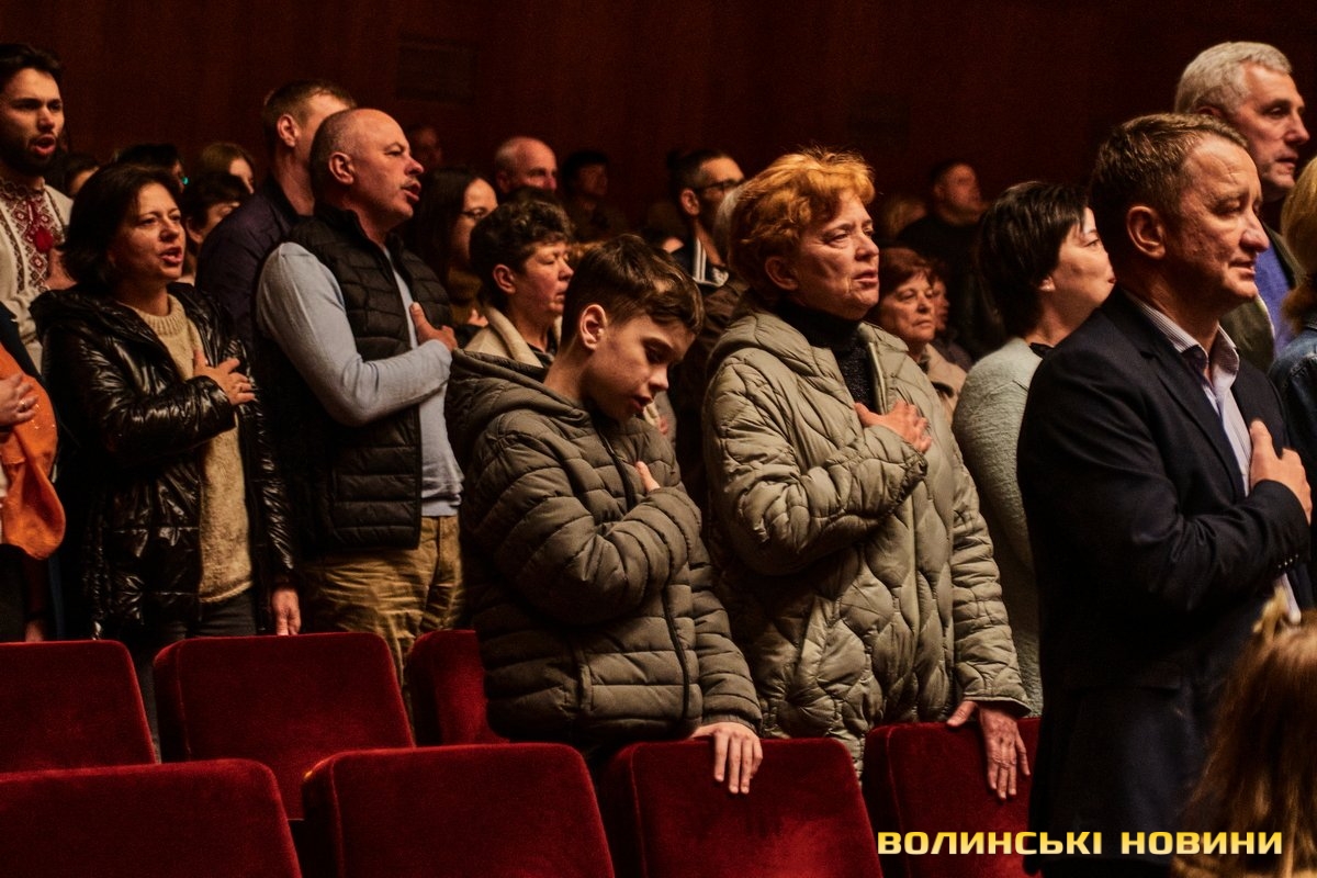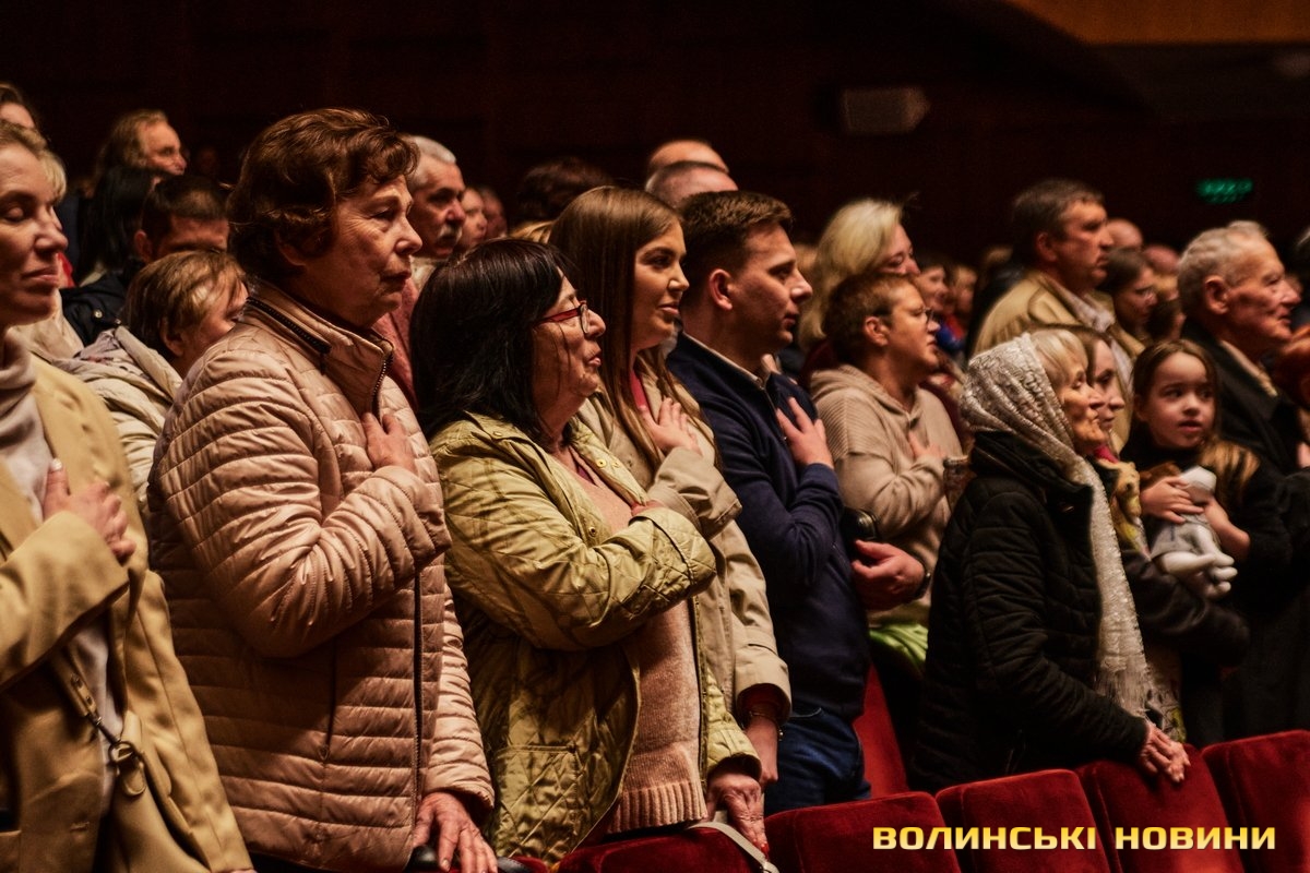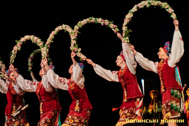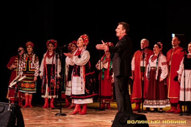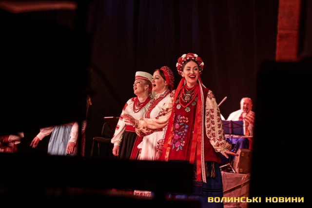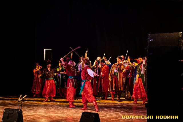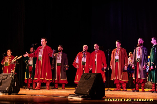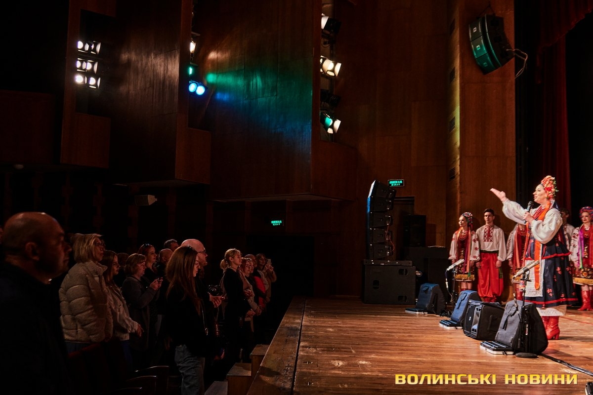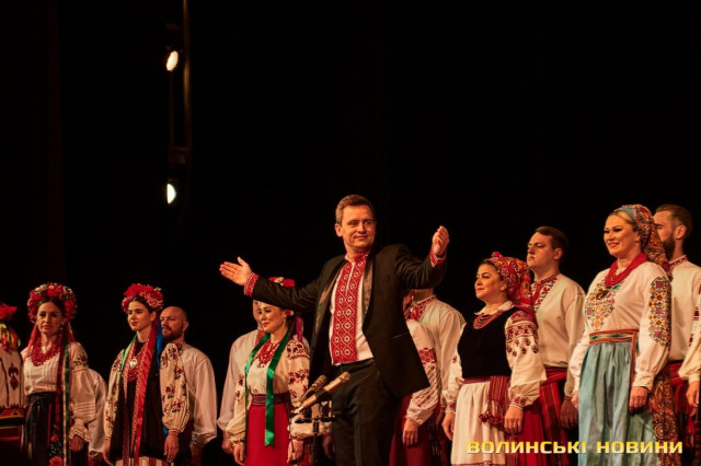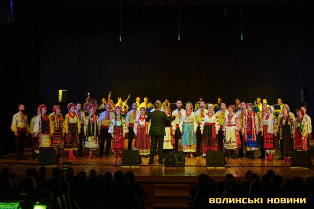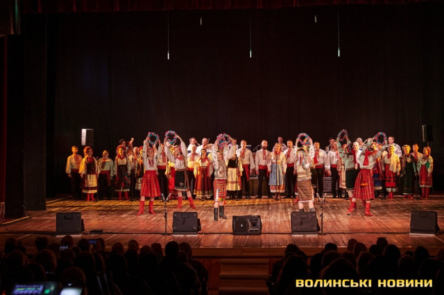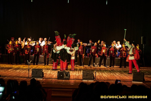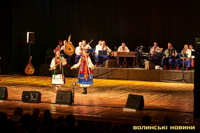 Концерт розпочався з хвилини пам’яті за тими, хто віддав свої життя за Україну. Козацькі думи, жартівливі сценки, лірика, гаївки та веснянки переплелися у неймовірне видовище.Кілька разів зі сцени лунали композиції, які глядачі зустрічали оплесками та стоячи. Особливо запам’яталися пісні: «Ой у лузі червона калина...», «Реве та стогне Дніпр широкий», жартівлива сценка «Козацькі забави» та звичайно карпатський аркан.«Дякуємо Волинській землі за гостинний прийом. Тут надзвичайна атмосфера і талановиті люди. Безмежно дякуємо нашим воїнам за те, що ми сьогодні усі разом співаємо, танцюємо і можемо так спілкуватися. Слава Збройним силам України! Ми збираємо цей тиждень кошти на карети швидкої допомоги... Українці – одна велика родина. І давайте працювати усі разом на перемогу. Я впевнена, що в цьому залі немає жодної людини, яка була би байдужою до долі нашої держави. Тому що Говерла стоїть, Дніпро реве, Україна бореться. Україна була, Україна є і Україна буде...І нехай згинуть наші вороженьки, як роса на сонці!», – звернулася до глядачів ведуча свята.