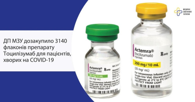 В ДП МЗУ нагадали, що у 2021 році вже закуповувалися 2784 флакони Тоцилізумабу дозуванням 200мг/10 мл та 5950 флаконів дозуванням 80мг/4 мл.
