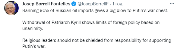 Головний дипломат ЄС Жозеп Боррель, коментуючи схвалення санкцій, підтвердив, що за початковим задумом Гундяєв мав бути у списку.