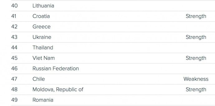 Нагадаємо, в минулому році Україна посіла 50-е місце.