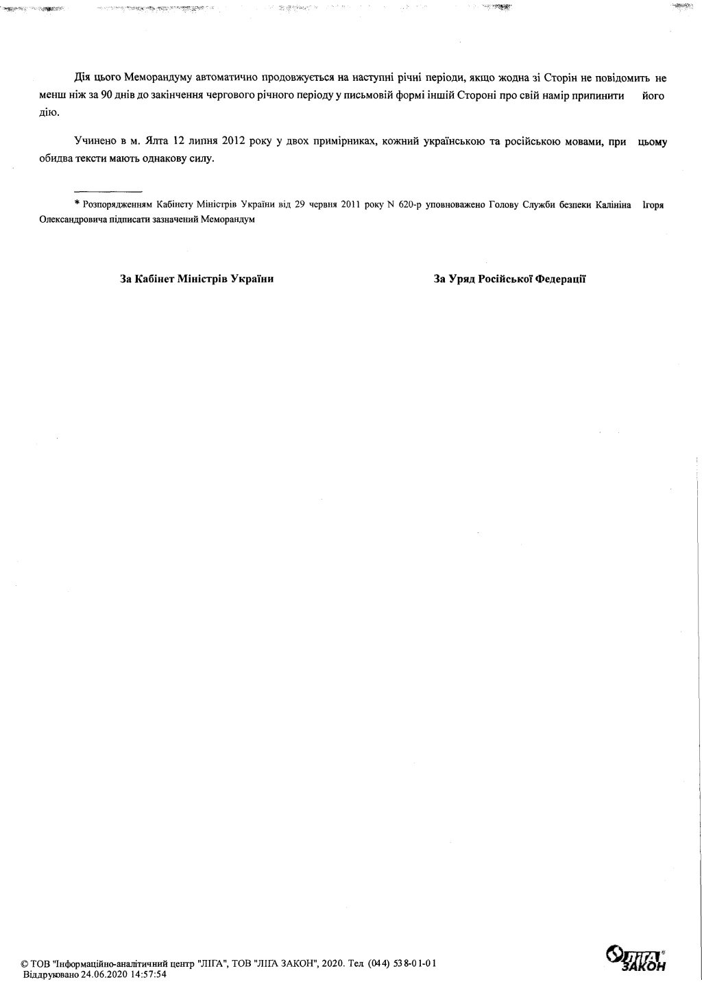 Міністерству закордонних справ України доручено повідомити російську сторону про припинення дії меморандуму.