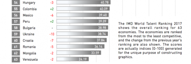 У загальному заліку конкурентності країн по талантах наша країна посіла 59 місце в рейтингу з 63 країн, при цьому за рік позиції України тільки погіршилися.