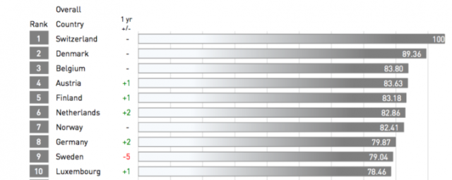 У порівнянні з минулим роком, Україна погіршила свій результат в загальному заліку на 10 позицій – раніше вона займала 49 місце в рейтингу. Сильніше просів тільки Казахстан (44 місце в рейтингу) – відразу на 14 позицій. Також -10 в загальному заліку у Філіппін (55 місце). Решта країн або втрачають позиції повільніше, або поступово покращують їх.