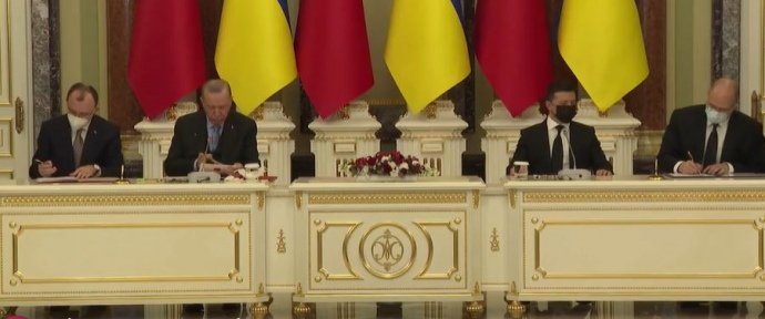 Відбулося це у Києві під час офіційного візиту президента Туреччини Реджепа Тайїпа Ердогана. Офіс президента України транслював подію, передає Громадське.