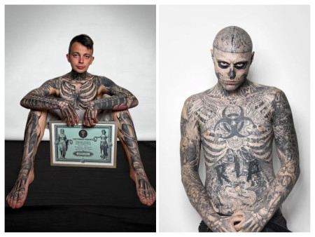 Українець Олег Карпа встановив новий світовий рекорд, набивши на тілі 230 зображень кісток. Він значно перевершив показник легендарного Zombie Boy, у якого було 139 татуювань скелета.