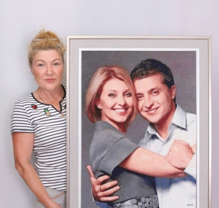 Заслужена майстриня України з Житомирщини Тетяна Пащенко вишила портрет президента Володимира Зеленського та першої леді Олени Зеленської.
