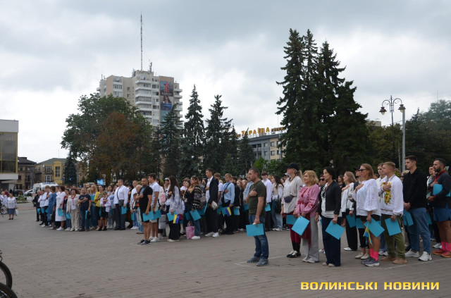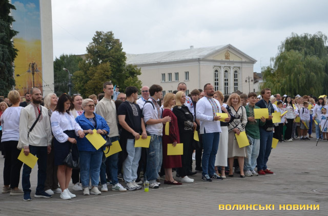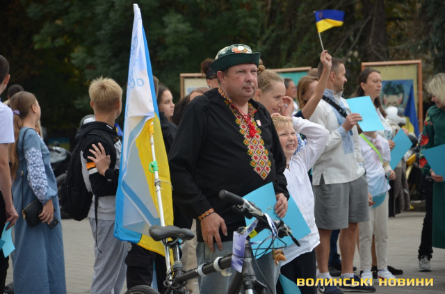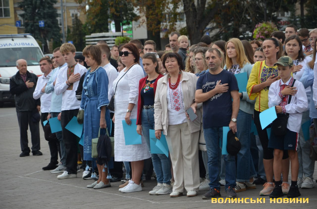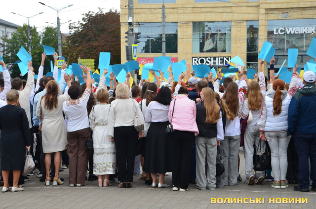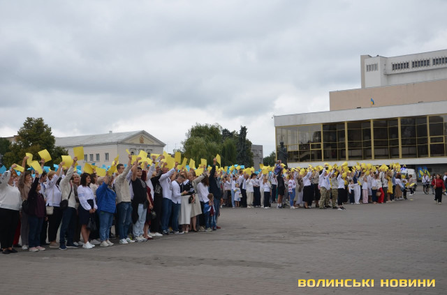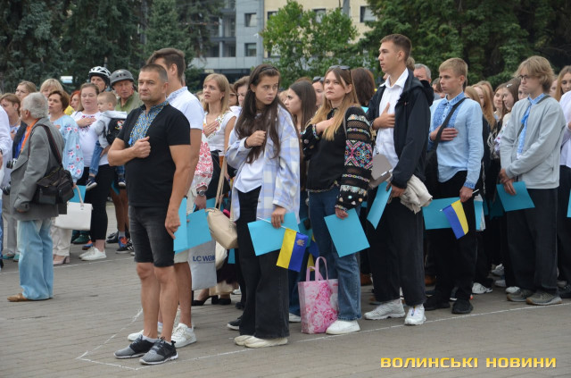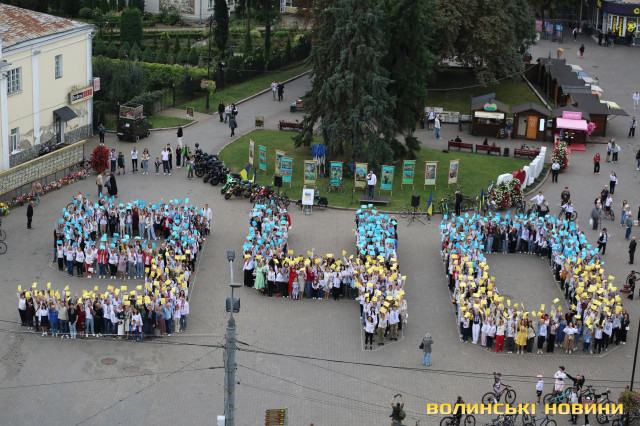Перед тим як утворити фігуру, присутні вшанували пам'ять загиблих у російсько-українській війні і виконали Державний Гімн України. Взяли участь в акції освітяни, спортсмени, чиновники й особисто Луцький міський голова Ігор Поліщук.Містяни знають про акцію і охоче долучаються, акцентувала начальниця відділу молодіжної політики департаменту молоді та спорту Луцькради Зарина Дацик.
