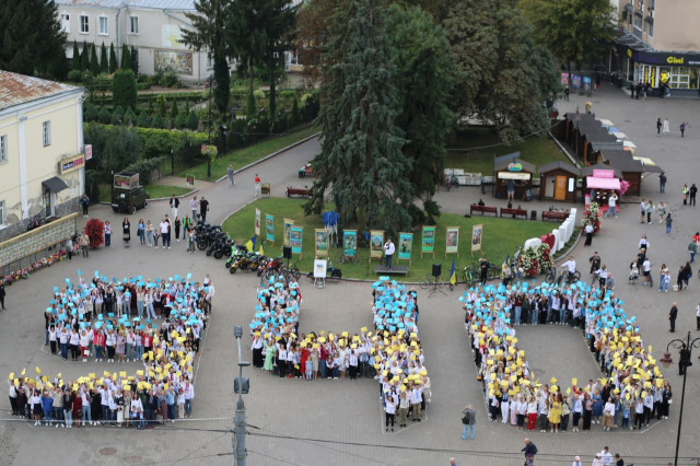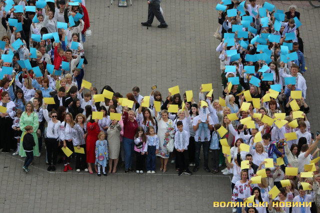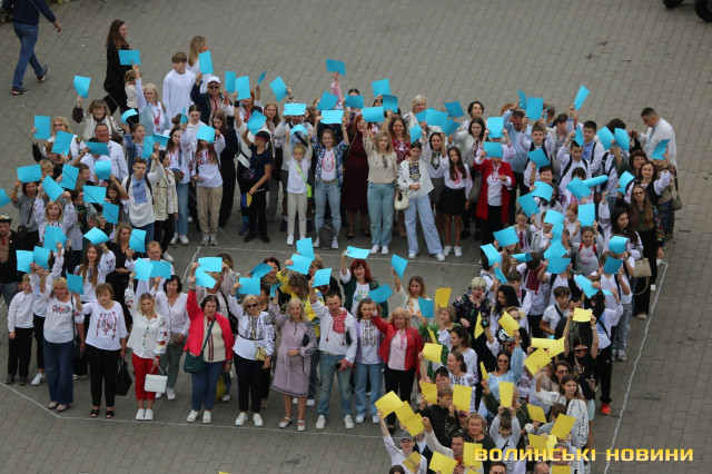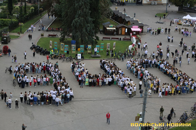 «Українська вишиванка-2025»: лучани у вишитих сорочках створили фігуру на честь Дня міста. Фото