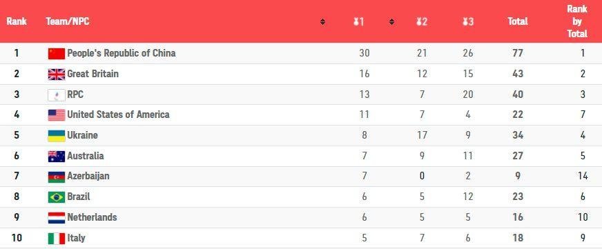 Урожайний день дозволив Україні увірватися до топ-5 медального заліку Паралімпіади. У нашої збірної 8 золотих медалей, 17 срібних і 9 бронзових.Паралімпіада стартувала 24 серпня і пройде до 5 вересня.Україну на змаганнях представляють 143 спортсмени в 15 видах спорту. Найбільше представництво в Україні в плаванні (40 спортсменів) та легкій атлетиці (32).