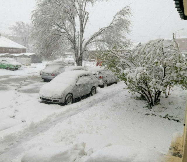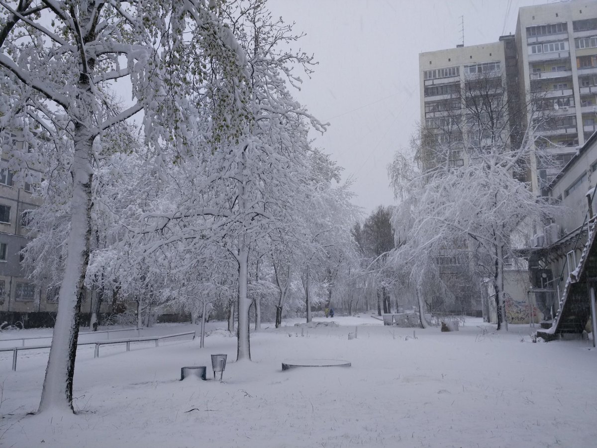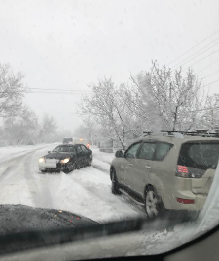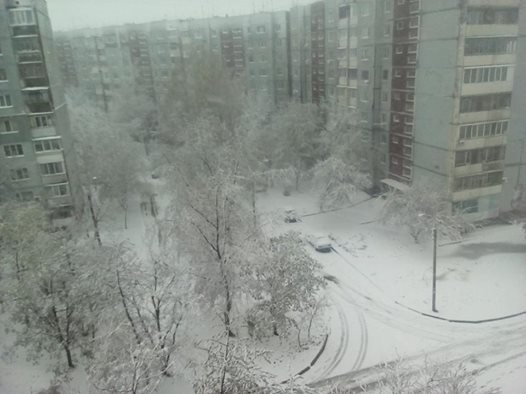 Фото сильного снігопаду, який пройшов в Дніпрі та ще низці міст України вранці 19 квітня, опублікували у мережі. Під Дніпром - величезний затор, закриті школи.