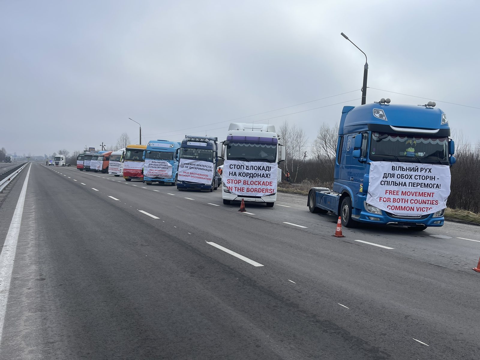 Як стверджують активісти, поліція дотрималася своєї обіцянки й вночі не дозволяла подальший рух Україною польським вантажівкам із водіями, які не мають дозволу на рух під час дії комендантської години.