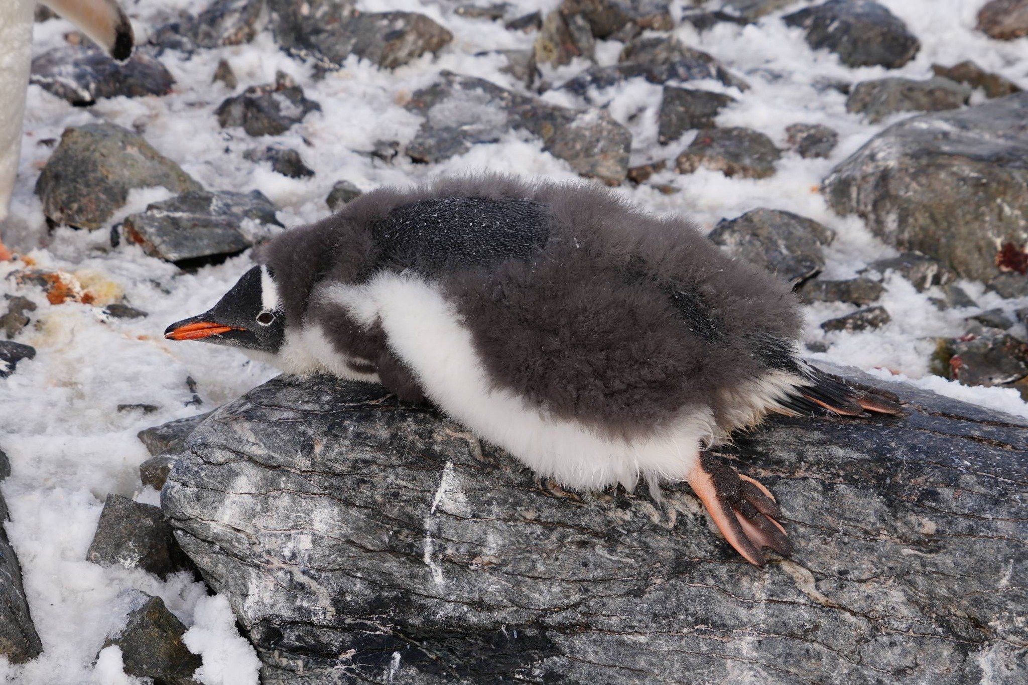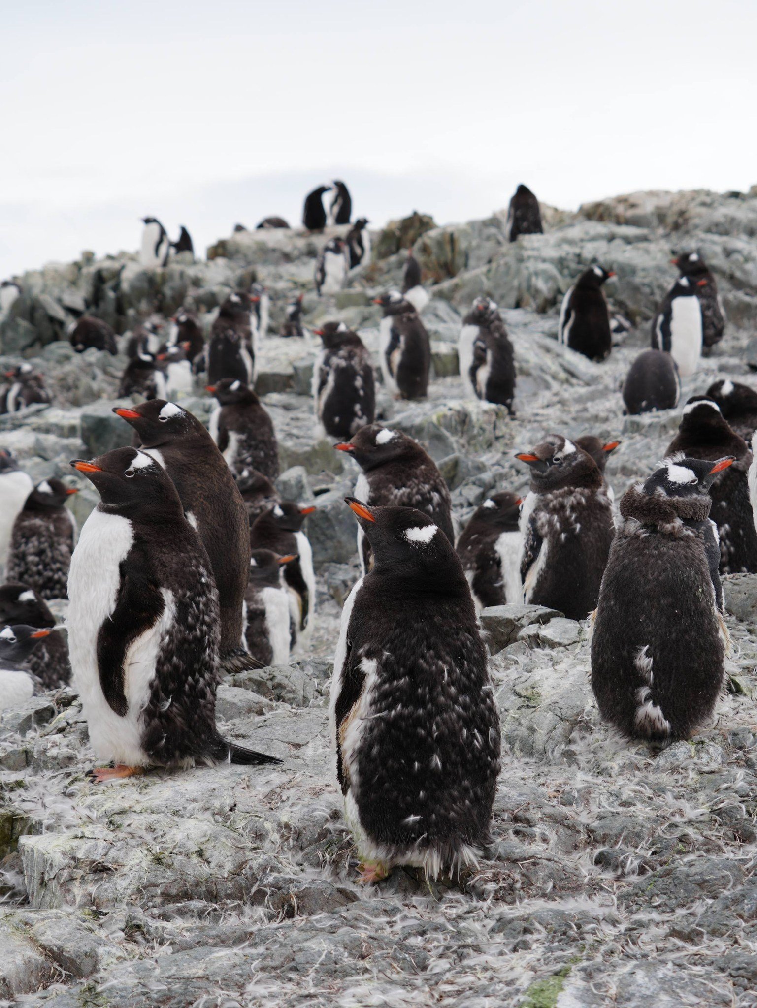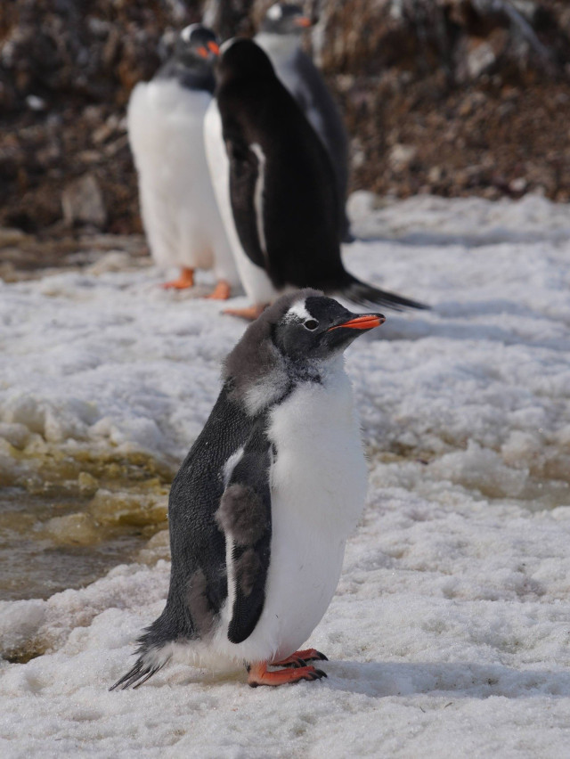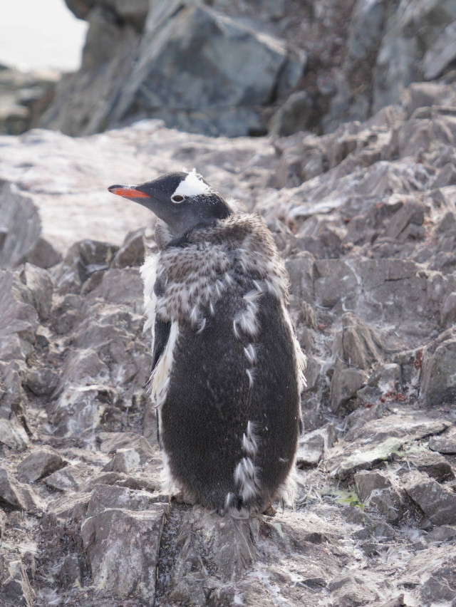 Крім того, линяють зараз і дорослі пінгвіни. На відміну від інших морських птахів, вони скидають майже все пір’я одночасно. У цей час у них свербить все тіло. Вони не можуть плавати в океані та добувати собі їжу.