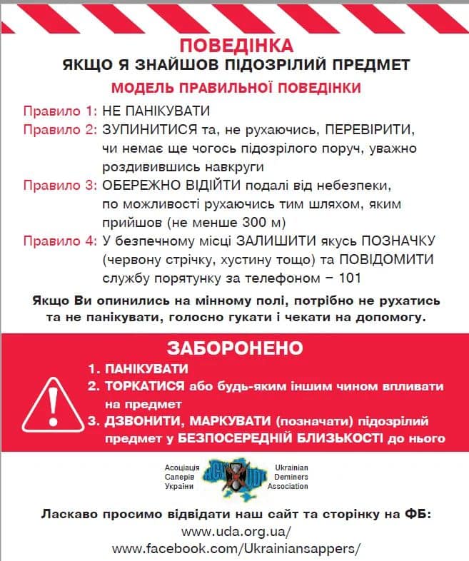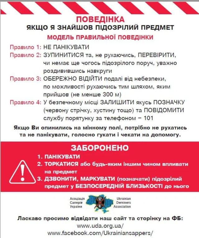 А за допомогою інфоргафіки детально пояснюють, як діяти в тому разі, якщо ви знайшли вибухонебезпечний пристрій.