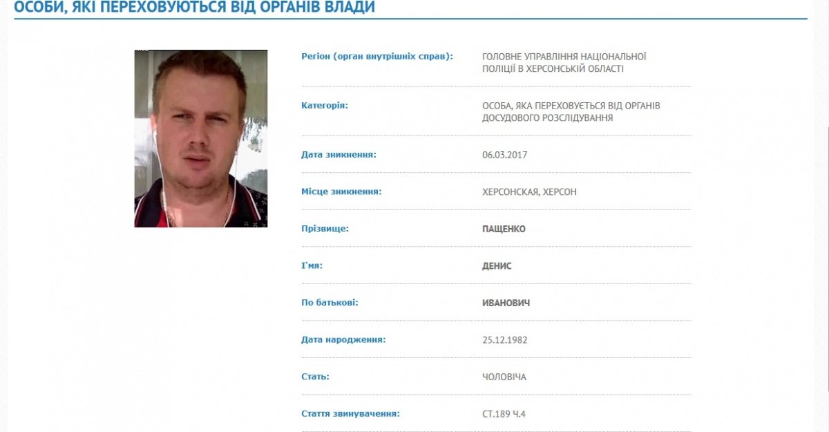 У розшук Пащенко був оголошений 6 березня 2017 року, а в міжнародний розшук – 1 листопада 2018 року.