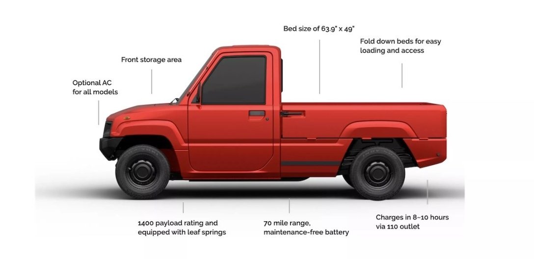 Пікап EEC L7e має вантажопідйомність 500 кг. Спереду в нього передбачено додатковий багажник, як у Tesla. Комплектація включає камеру заднього виду, серед опцій є кондиціонер.Запас ходу EEC L7e – 120 км