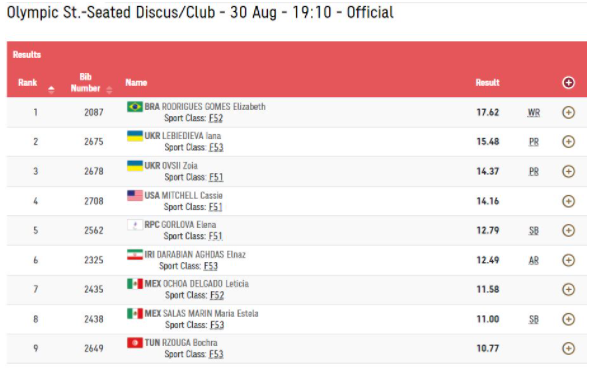 У своїй четвертій спробі Овсій метнула диск на 14,37 метрів і очолила гонку за медалями.