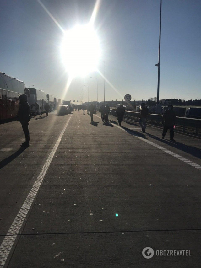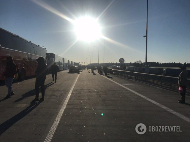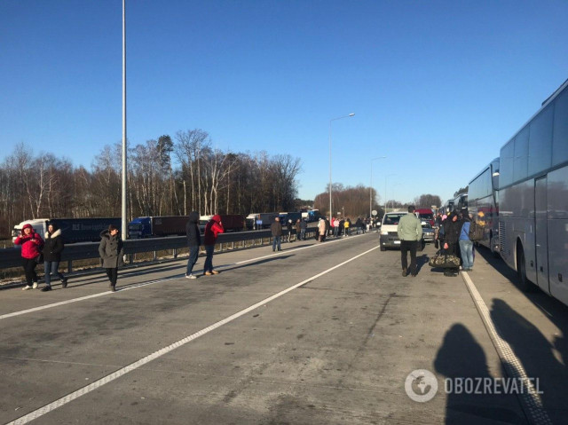 Як розповіла українка Ольга Веркалець, яка також знаходиться на кордоні, ситуація паралізована з ночі, а черга автобусів в Україну становить 5-6 кілометрів.