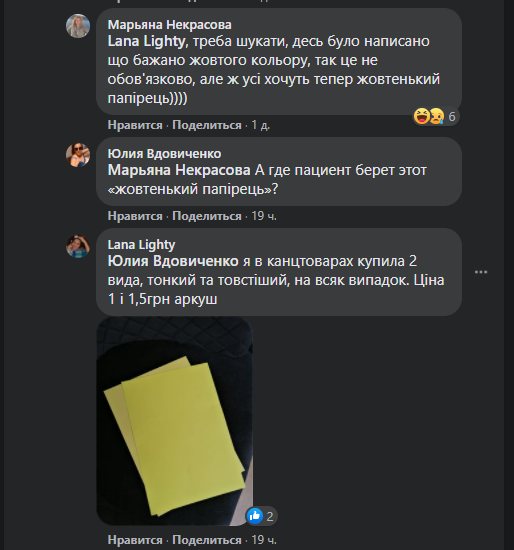 Як передає УНІАН, відповідну проблему обговорюють користувачі у Facebook спільноті «Вакцинація: питання та відповіді ( Прививки – вакцины – щеплення)». Деяким українцям для друку свідоцтва довелось самостійно купляти жовтий папір.Як повідомляє Ліга, в МОЗ журналістам пояснили, що вимоги щодо кольору паперового свідоцтва не існує.