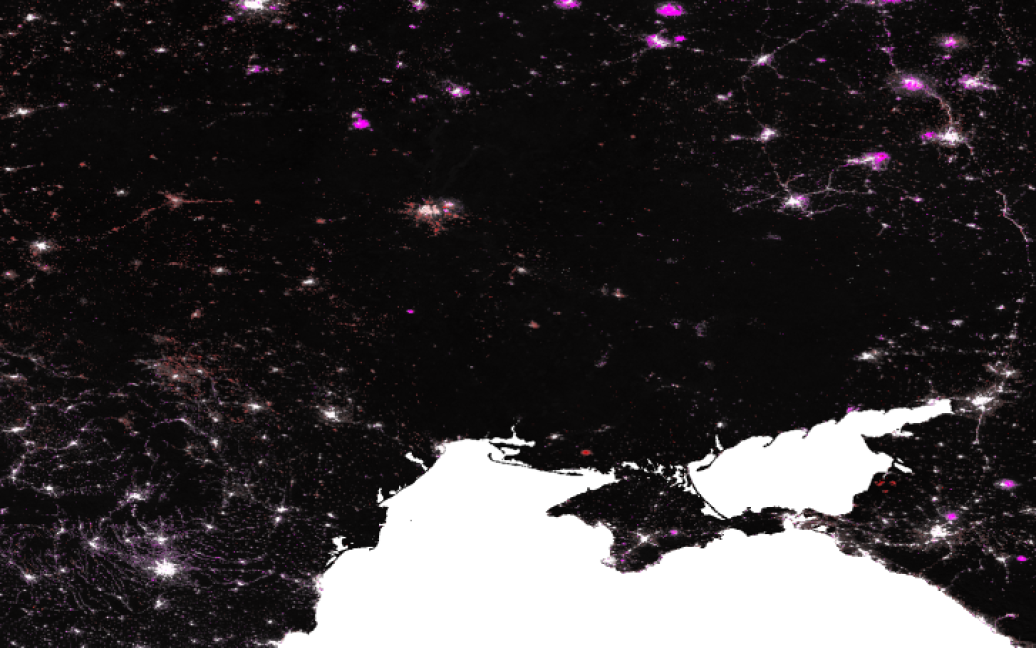 Після російських обстрілів рівень освітленості в містах України впав удвічі, про що свідчить супутниковий знімок.