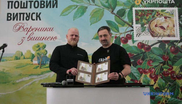 «Сьогодні прийшов час продовжити серію – можна сказати, вже іншим виробом із тіста: одним із символів української кухні та гостинності – вареником із вишнею», – зауважив очільник «Укрпошти».Сьогодні «Укрпошта» разом з друзями з ресторану «Остання Барикада» та його шеф-кухарем Василем Данильчуком урочисто запустили марку «Вареники з вишнею» і пригостили гостей.