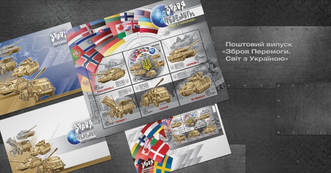 «На честь цього Укрпошта оголошує випуск марки «Зброя Перемоги. Світ з Україною». Новий благодійний поштовий блок (збираємо на дрони), на який ми відкриваємо передзамовлення сьогодні, включає зображення культових Challenger 2, Leopard 2, Patriot, CAESAR та M2 Bradley. Назви, які відтепер знайомі усім. Назви, які з острахом та заздрістю звучать на пропагандистських каналах, бо усі знають, як ця техніка показує себе у бою», – підкреслив Смілянський.