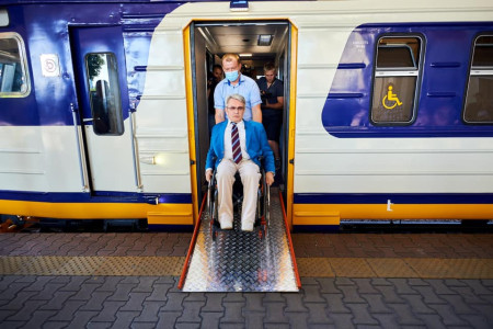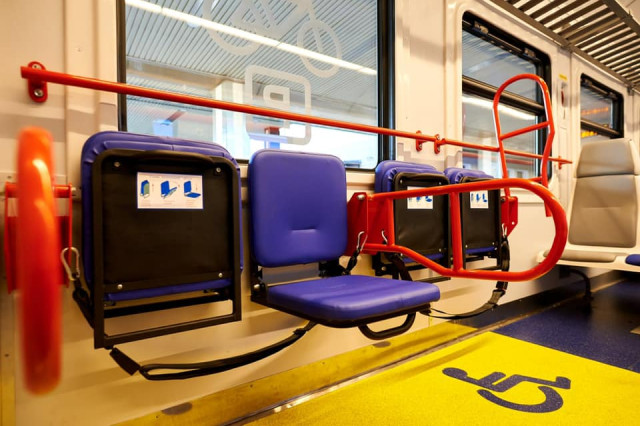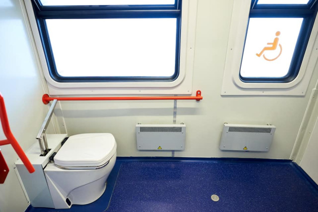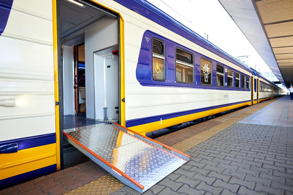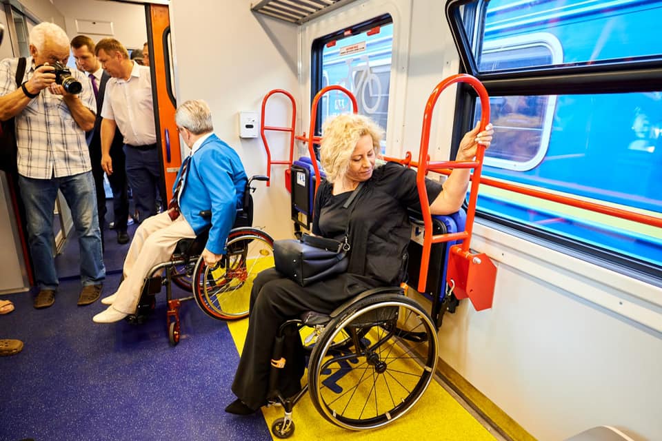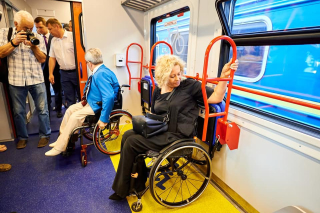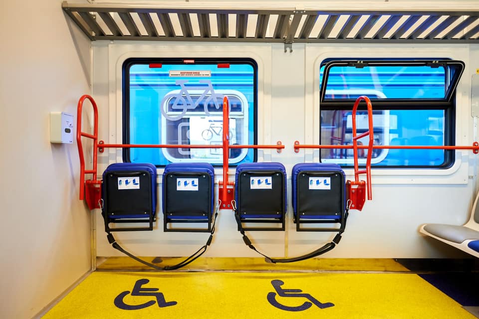 Нова електричка має вагони, обладнані для людей з інвалідністю. Там є пандуси, кнопки виклику поїздної бригади та місця для інвалідних візків, а всі інструкції нанесені шрифтом Брайля.