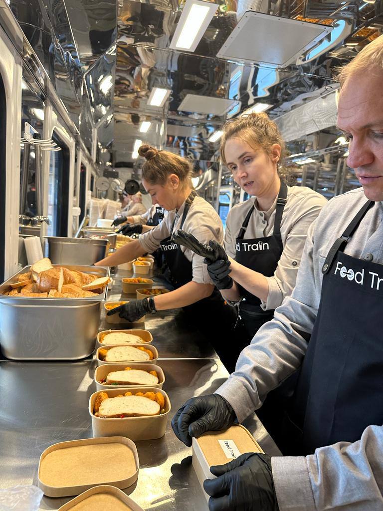 «Укрзалізниця» створила перший у світі автономний поїзд-кухню – Food Train. Він може автономно працювати 5-7 днів, а обладнання поїзда дозволяє готувати повноцінні страви: супи, каші, салати, мʼясо та інше. Спеціальні термобокси, встановлені всередині поїзда, дозволяють транспортувати вже готові ланчбокси з їжею від поїзда-кухні до кінцевого споживача.