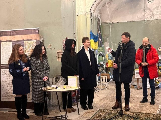 Волинські волонтери зі спілкою українських студентів відкрили у Свято-Троїцькому монастирі в литовському місті Вільнюс виставку військових трофеїв «Металевий відблиск».