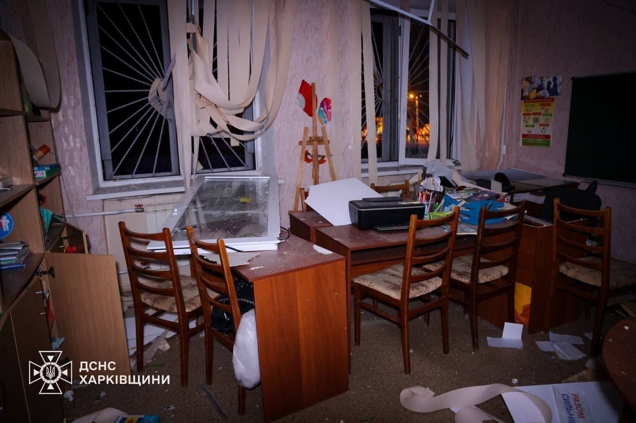 Крім того, за даними ДСНС, у Харкові внаслідок ракетної атаки постраждали дві людини. Ударів завдано по Індустріальному району міста. Одне з влучань було по будівлі навчального закладу. Сталися руйнації та пожежа. Пошкоджено розташовані поряд багатоповерхові житлові будинки. Також зафіксовано ще одне влучання, там виникла пожежа. Триває ліквідація наслідків атаки.