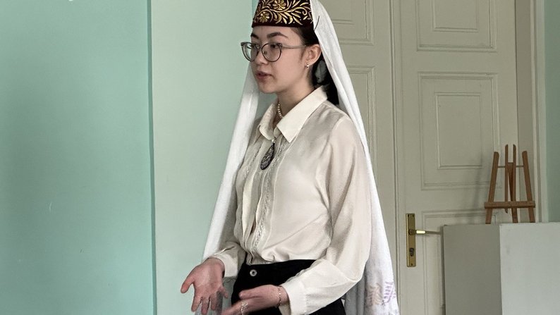 «На цій зображене родове дерево, це досить унікально і незвично, бо зазвичай його зображали на чоловічих поясах, а не на жіночих головних покривалах. Там зазвичай вишивали внизу воду – це символ життя, руху, а ще жіночі орнаменти», – розповідає жінка.Власне марама, поясню Султаніє Зейнідінова, – це головне покривало заміжніх жінок. Воно довше і має особливості. Зокрема марама мала бути такої довжини, щоб могла закрити кисті, коли жінка стоїть, а коли сидить, щоб повністю закривала її тіло по колу.