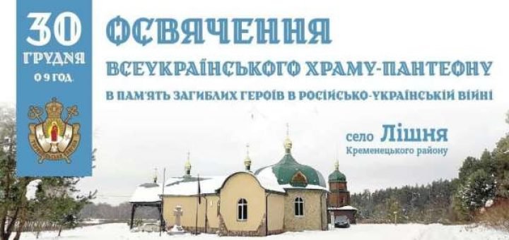 У селі Лішня Кременецького району відбудеться освячення Всеукраїнського храму-пантеону.