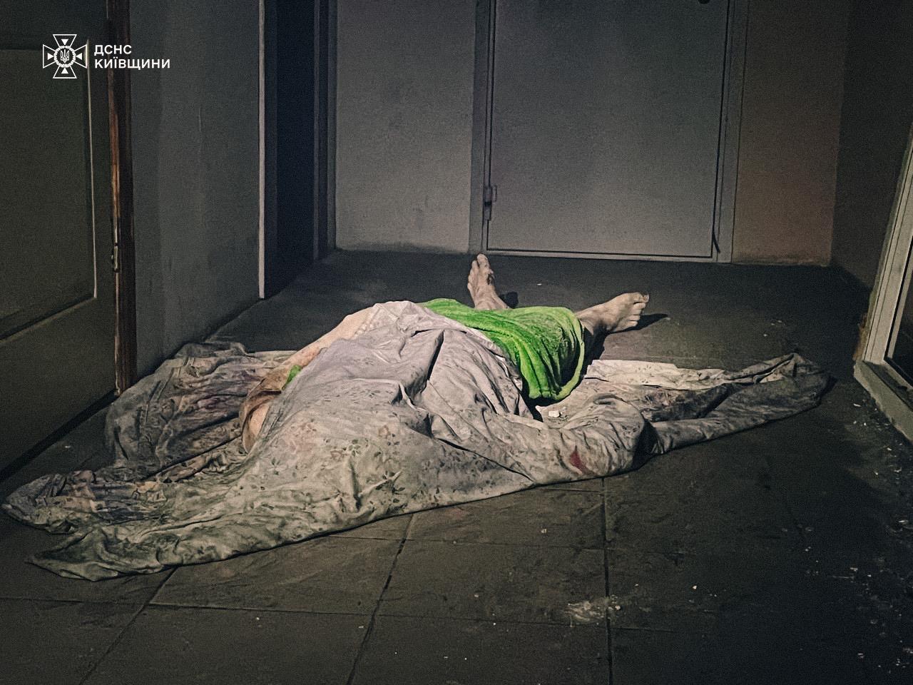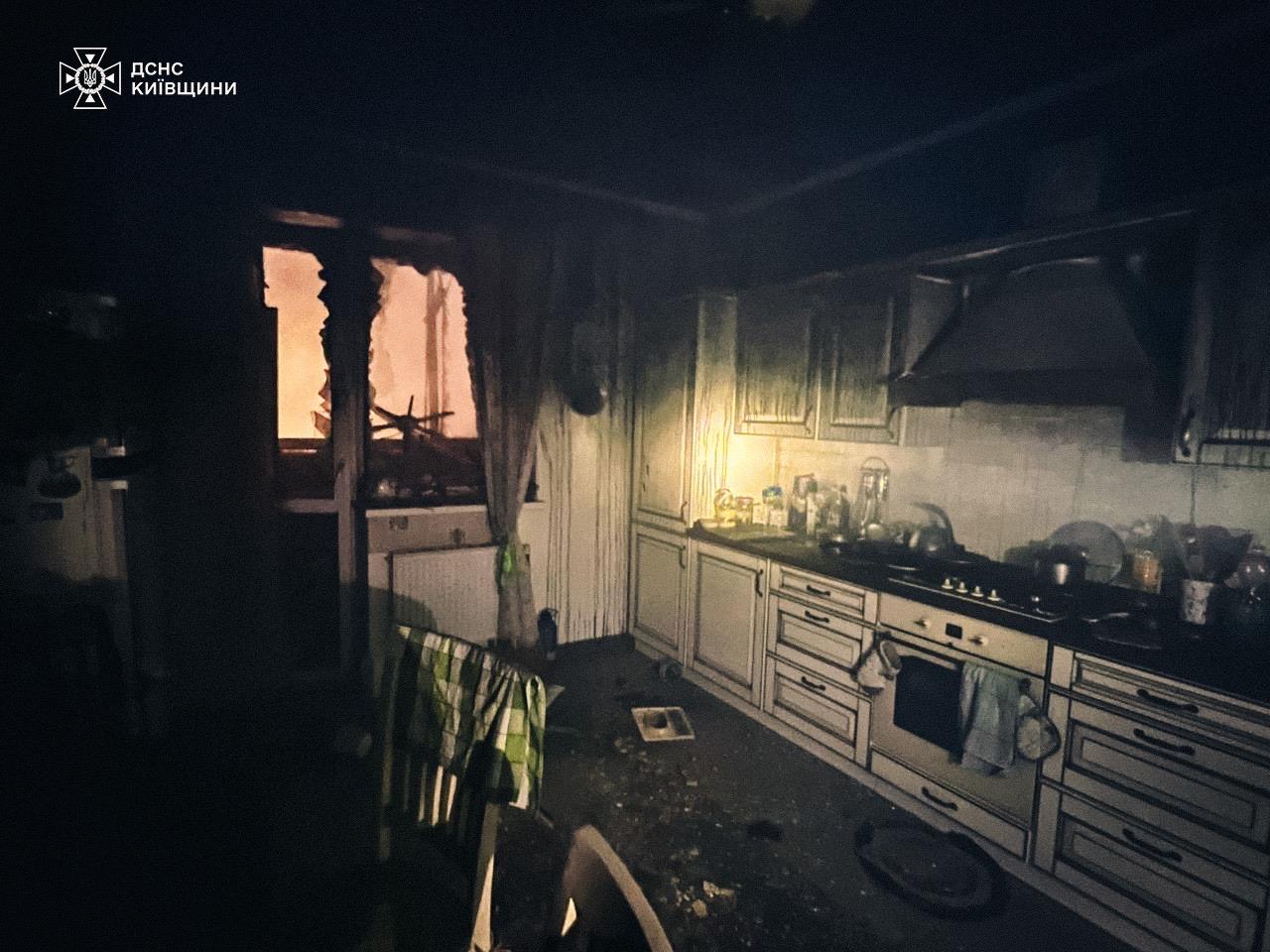 Уламки БПЛА знищили житловий будинок у Броварах. Пожежу вдалося загасити близько четвертої години ранку. Загинули чоловік 1966 року народження та його дружина 1965 року народження.