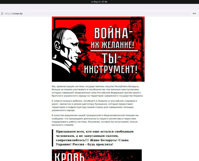 Наразі жоден із цих сайтів не працює, а на сайті НЦМКЦ було розміщено повідомлення проти війни в Україні.