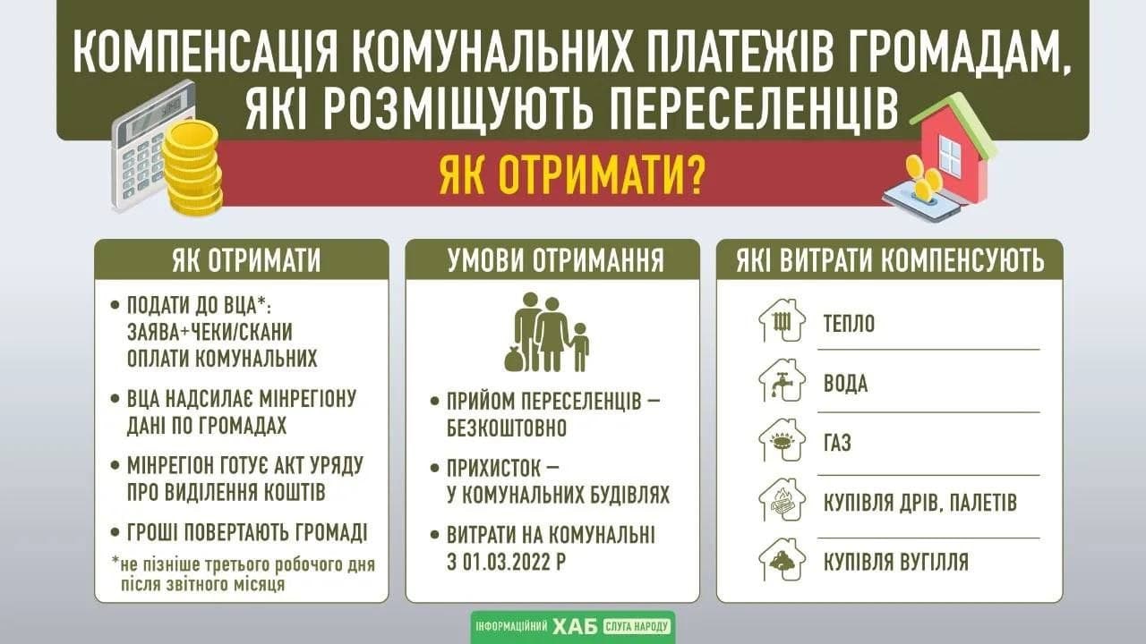 Уряд відшкодує комунальні витрати бюджетам громад, які безоплатно прийматимуть переселенців.