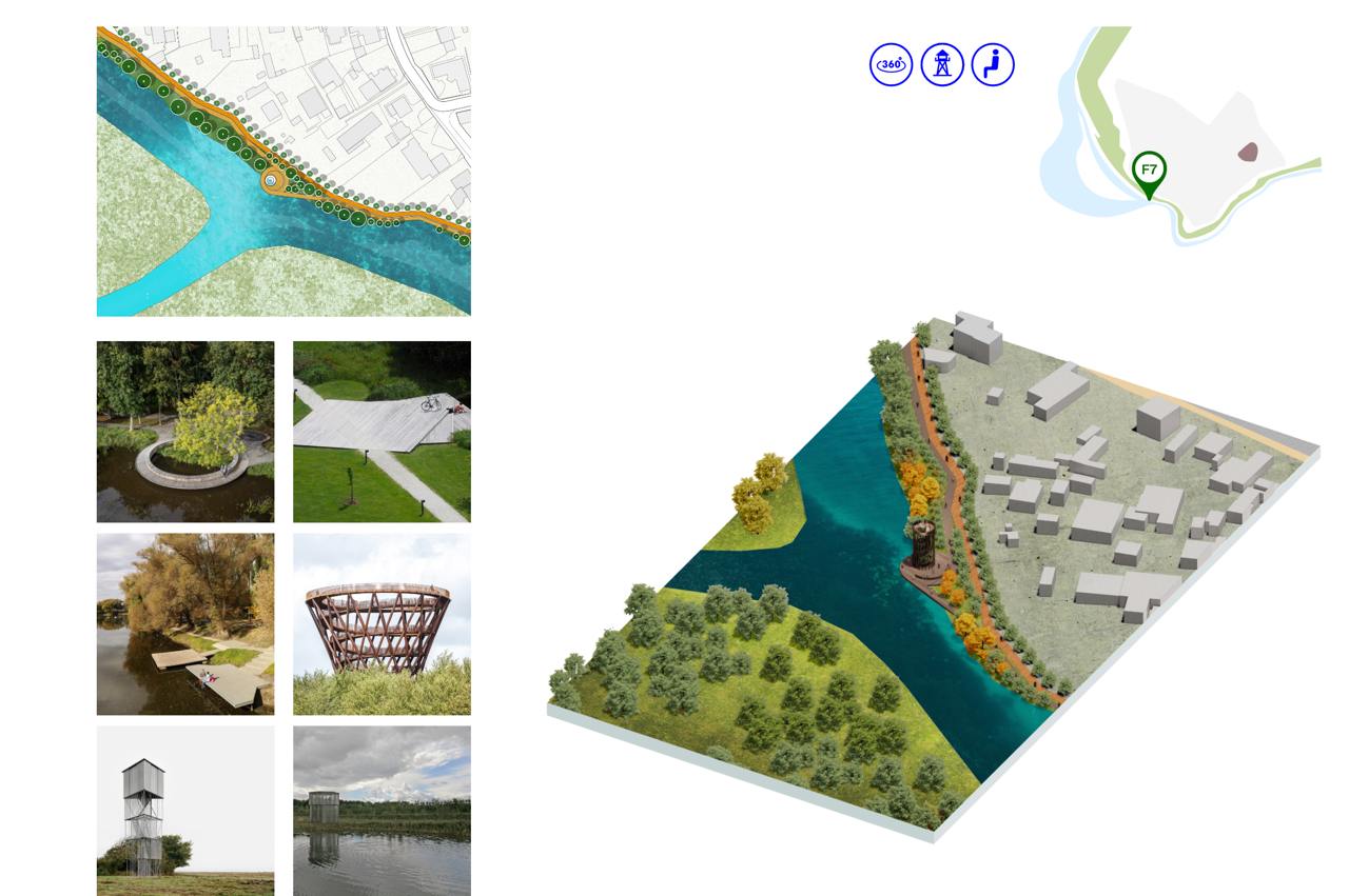 Прибережний парк: Piuarch пропонує сполучити всі історичні та культурні об’єкти, розташовані на березі Стиру. Таким чином єдиний зелений шлях міг би пролягти від території навколо замку до вулиці Набережної. Там можна було би облаштувати центр прокату човнів, пункт спостереження за птахами, парк скульптур, ігровий майданчик для дітей та інше.