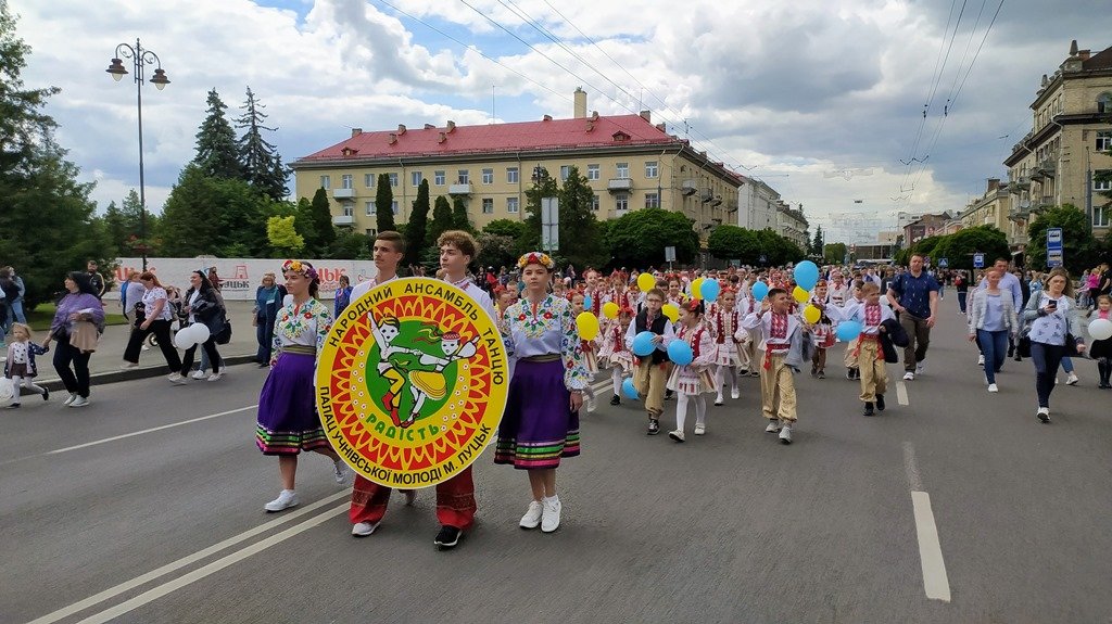 Традиційно 1 червня на Театральній площі зібралися талановиті діти, юнаки та дівчата найбільшого на Волині закладу позашкілля і рушили центральним проспектом міста до ПУМу під звуки оркестру духових інструментів.До них приєдналися освітяни міста, працівники управління освіти Луцької міської ради. За гамірною різнобарвною колоною дітей спостерігали батьки, перехожі, журналісти, а про безпеку подбали міські правоохоронці.Біля пам’ятника Тарасу Шевченку відбулася хореографічна зупинка, під час якої виступили вишукані мажоретки народного колективу сучасного танцю «Міраж» під супровід ритмічної музики народного оркестру духових інструментів закладу.Біля Палацу учнівської молоді розгорнулося гамірне «дитяче містечко» з веселими завабками, майстер-класами і творчими активностями для усіх охочих. Звідусіль лунали музика, сміх дітей, голоси батьків. Стартував фестиваль танцювальним флешмобом з різнокольовими парасолями «Барвиста планета дитинства», в якому взяли участь усі юні учасники фестивалю.На імпровізованому ігромайданчику маленькі учасники відгадували загадки у літературному калейдоскопі «В гостях у казки чарівної», змагалися у пісенному батлі «Нашу пісню відгадай, разом з нами заспівай», танцювали разом з досвідченими артистами.Тим часом біля головного входу до палацу тривали різноманітні майстерки: веселі дружні шаржі «Автопортрет», спільна розмальовка «Талісман дитинства», проєкт «Долонька друга», яскравий боді-арт «Сяйте усмішки, сонцем зігріті», а під керівництвом художника на асфальті народжувалися оптимістичні картини юних талантів.Діти у зграйках збиралися навколо столиків, де педагоги ПУМу показували, які чудові речі можна зробити власноруч з паперу, ниток, тканин. А гарний настрій гостям фестивалю створювали запальні мелодії духової музики.Особливими гостями фестивалю стали заступник міського голови Ірина Чебелюк і начальник управління освіти Луцької міськради Зіновія Лещенко, які привітали дітей, батьків і педагогів зі святом. Ірина Іванівна передала їм вітання від мера міста Ігоря Поліщука і побажала гарно відпочити влітку.А фіналом яскравого фестивалю «Усі ми діти твої, Україно!» став святковий концерт за участю знаних в Україні та за кордоном танцювальних, хореографічних, вокальних та інструментальних колективів ПУМу. Юні виконавці вразили глядачів високою майстерністю, багатством репертуару і стильними сценічними костюмами.Нагородою їхній творчій праці стали щирі оплески численних глядачів. Адже у гаслі закладу «Палац – наш дім, ми господарі в нім!» – невтомна праця педагогів з талановитими вихованцями, перші зіркові успіхи молоді, надихаюче спілкування поколінь.