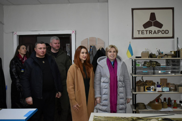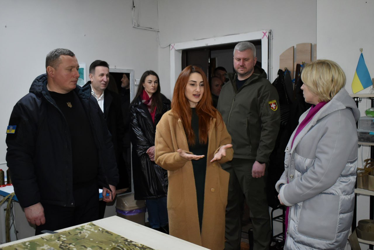У межах візиту на Волинь віце-прем’єр-міністр України – міністр реінтеграції тимчасово окупованих територій України Ірина Верещук відвідала швейне виробництво у Луцьку переселенки з Маріуполя.