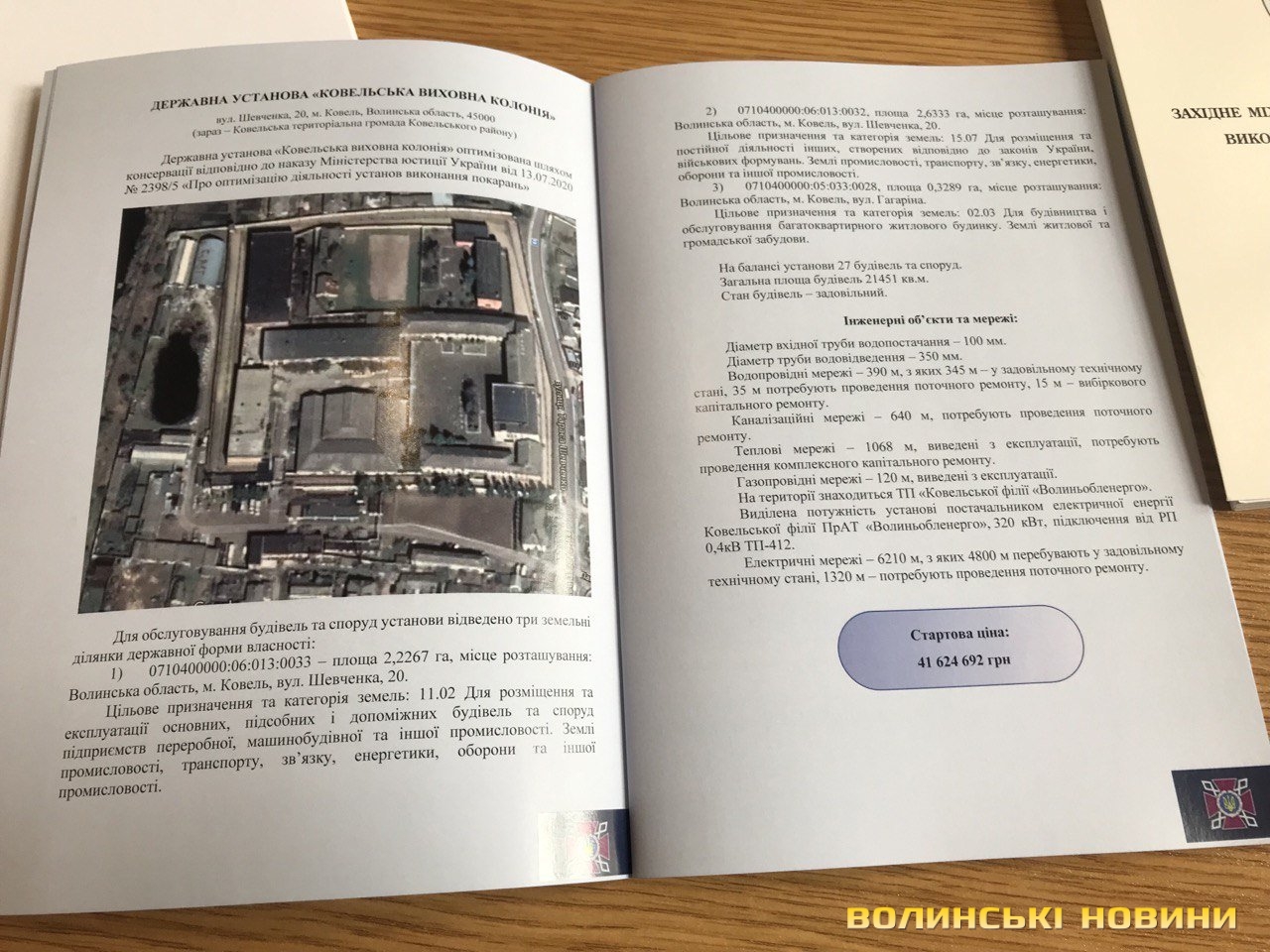 Сама колонія розташована в Ковелі на вулиці Шевченка, 20 на ділянці площею 4,8 гектара. Аукціон має відбутися 28 жовтня, і до претендентів немає жодних додаткових умов: продадуть тому учаснику, який запропонує найбільшу ціну. Початкова вартість лоту – 41,6 мільйона гривень.